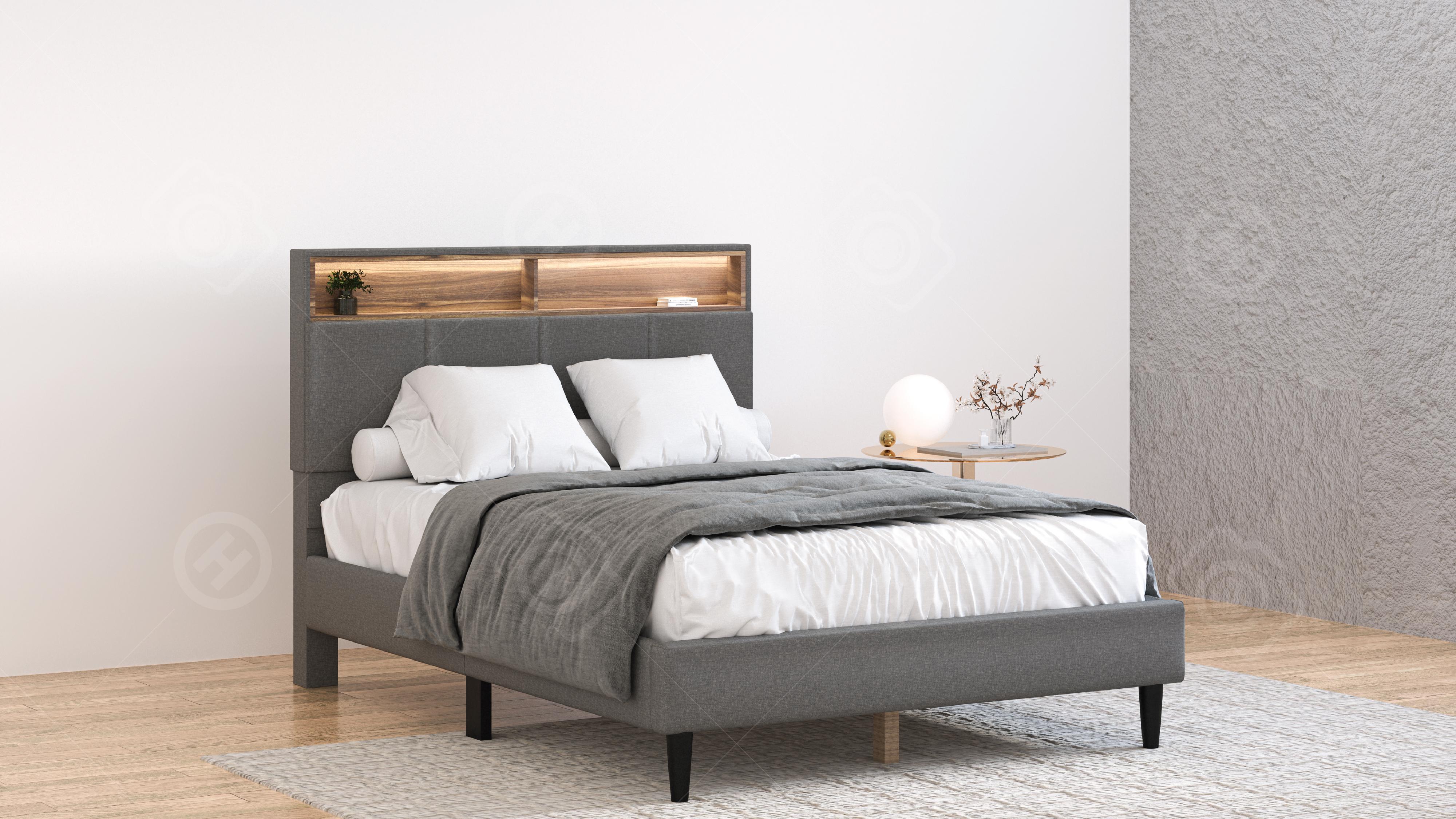Upholstered Storage Bed with LED Lights